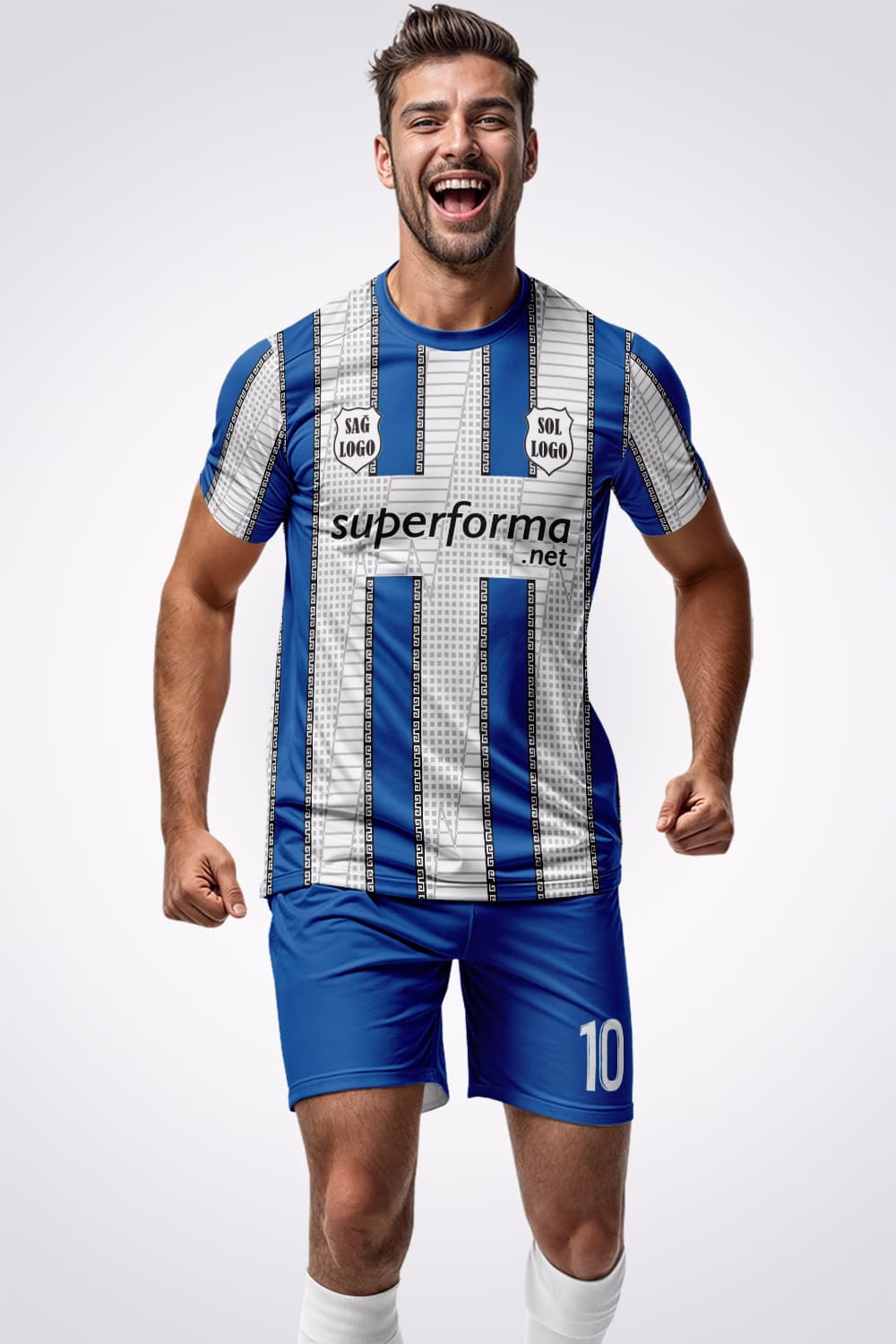 Beyaz Mavi Kitlat Halı Saha Forma, klasik futbol geleneğini modern üretim teknolojisiyle buluşturan zamansız bir modeldir. A-eron kumaş kalitesiyle üretilen Halı Saha Forma, hem şıklık hem de dayanıklılık açısından profesyonel standartlara sahiptir.