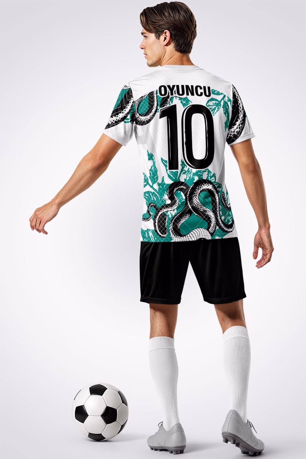 Yılan temalı tasarımıyla dikkat çekmek, takımınızın gücünü yansıtmak ve sahada unutulmaz bir etki bırakmak istiyorsanız, bu forma tam size göre.