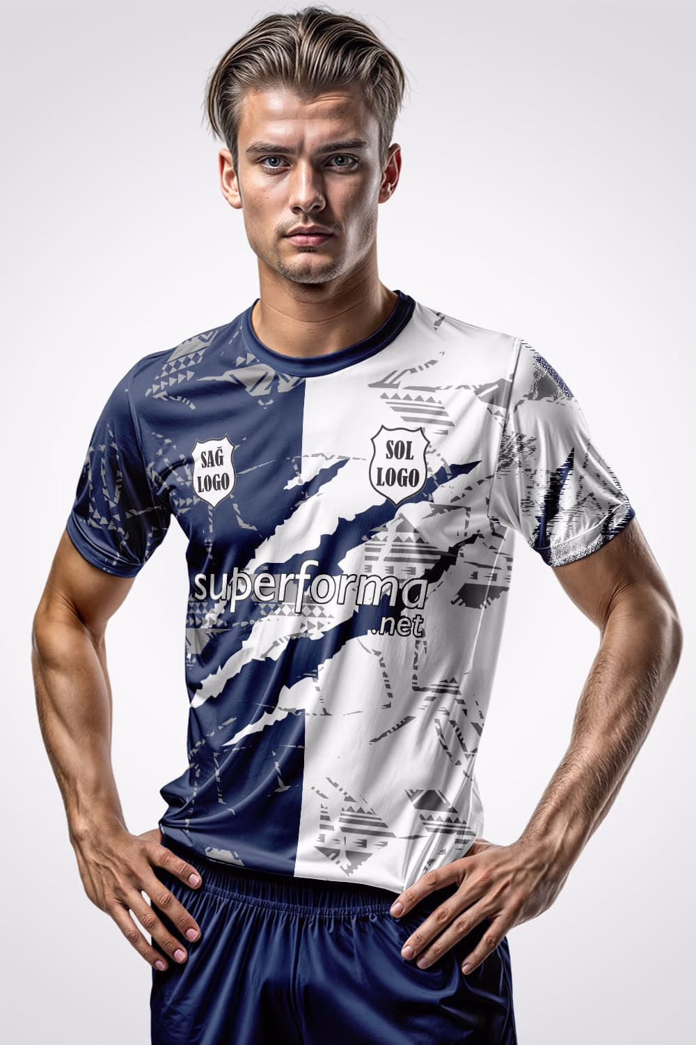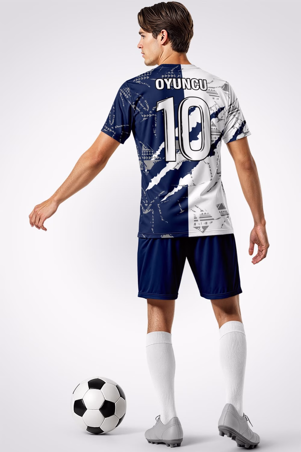 Lacivert Beyaz Asimetrik Halı Saha Forma ile Sadelikten Güce Uzanın