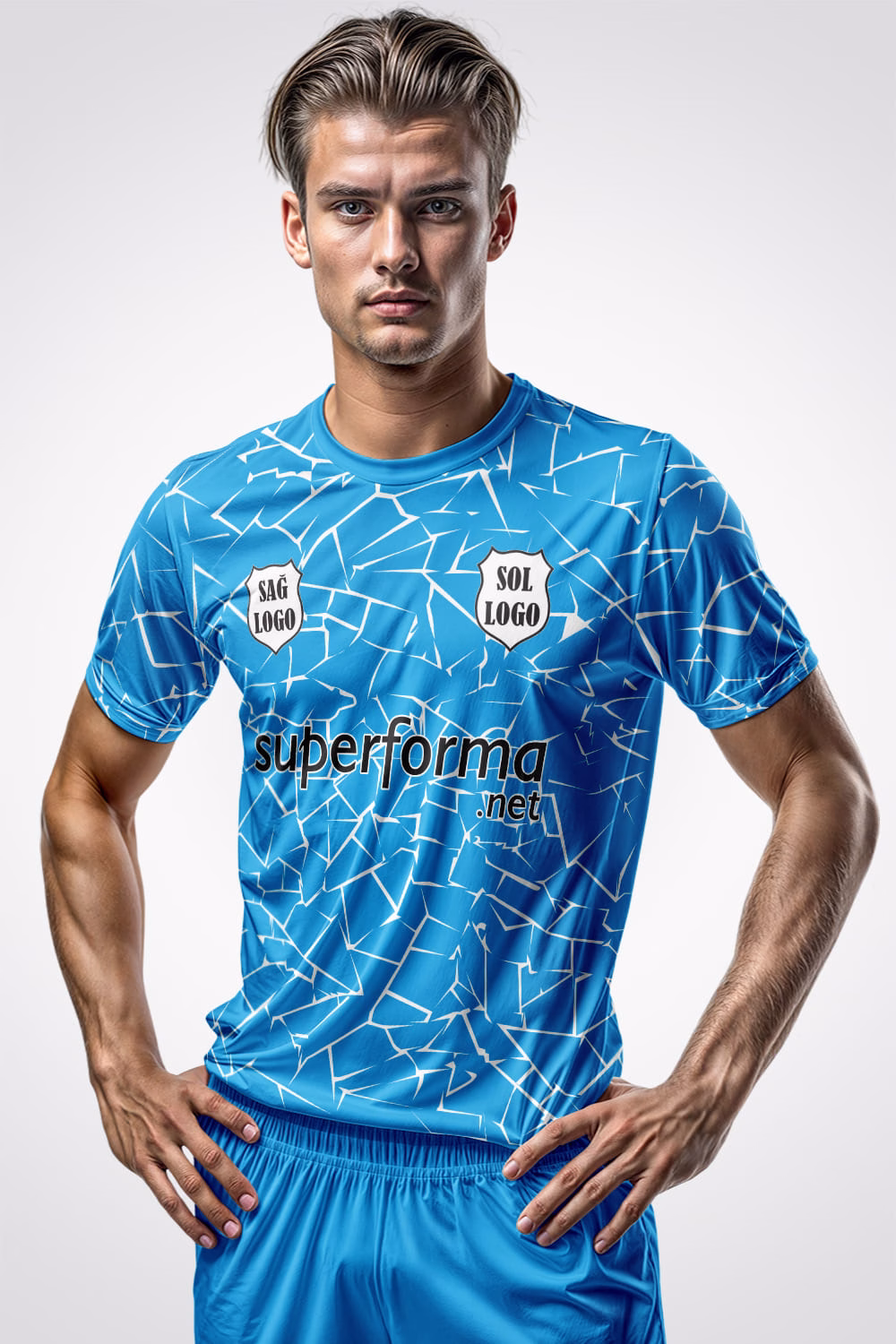 Mavi Beyaz Çizgili Halı Saha Forma ile Klasik Şıklık ve Sportif Ruh Bir Arada