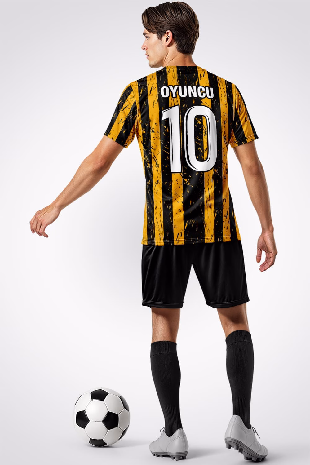 Bu forma, klasik futbol anlayışının sade ama etkili çizgilerini taşır. Sarı zemin üzerinde kullanılan siyah detaylar, güçlü bir enerji ve odaklanma hissi oluşturur. Renklerin kontrastı, sahada net bir duruş ve takım kimliği kazandırır.