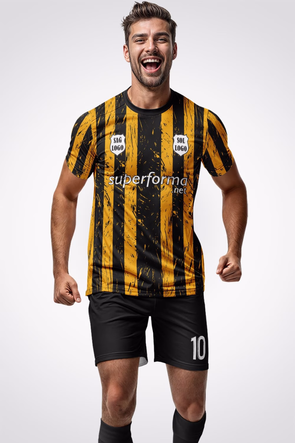 Sarı Siyah Retro Halı Saha Forma, takımınıza özel olarak kişiselleştirilebilir. Oyuncu isimleri, sırt numaraları, takım logoları, şort baskıları ve sponsor yazıları profesyonel baskı sistemleriyle uygulanır.