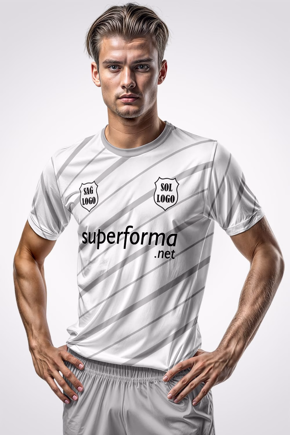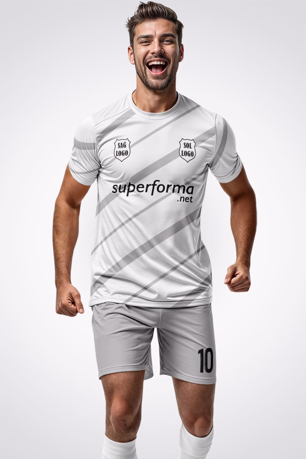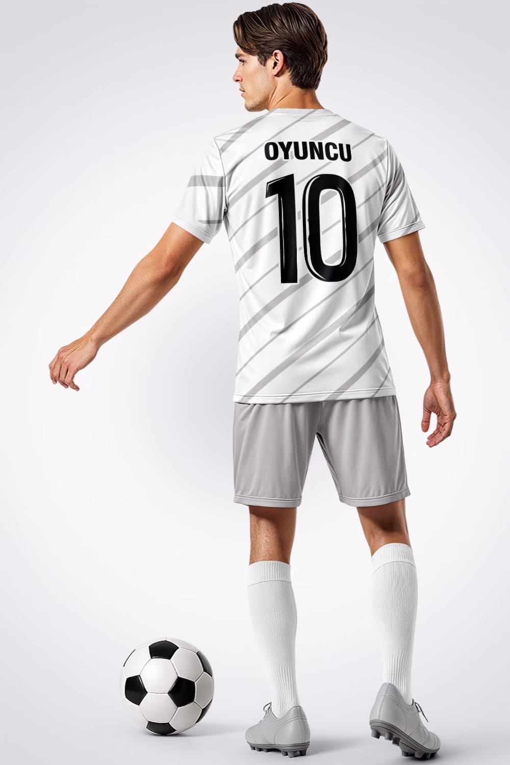 Bu forma, kontrastın gücünden ilham alınarak tasarlandı. Beyaz zemin saflığı ve sadeliği temsil ederken, çapraz siyah çizgiler takıma agresif bir karakter kazandırır. Bu özgün desen, hareket halindeyken dikkat çekici bir akış hissi oluşturur. Hem klasik renk severler hem de modern tarzı benimseyen takımlar için mükemmel bir seçenektir.