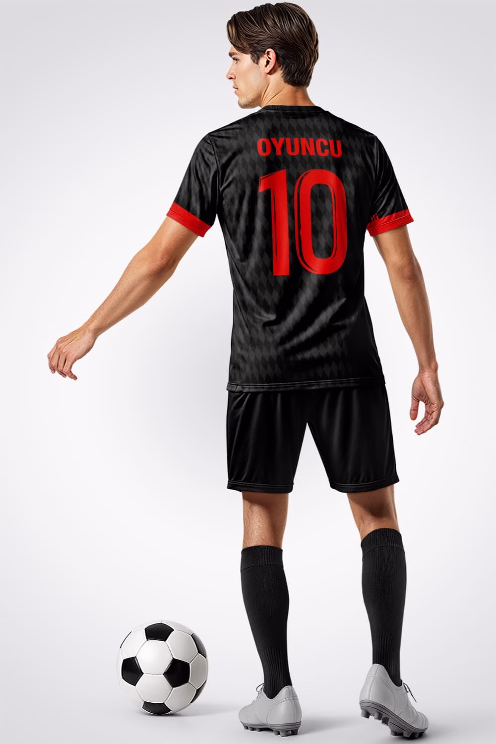 Yaka tercihi V ya da bisiklet yaka olarak özelleştirilebilir. Kol uçları ve omuz çizgilerinde kullanılan kırmızı detaylar, formanın genel estetiğini destekler. Arka bölüm sade bırakılır ve oyuncu isimleri ile numaraların rahatça görünmesi sağlanır. Bu formayla takımınız sahada hem tarz sahibi hem de organize görünür.