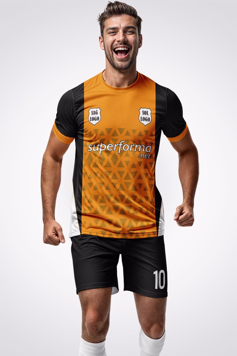 Turuncu Siyah Halı Saha Forma ile Sahada Gücü ve Cesareti Temsil Edin