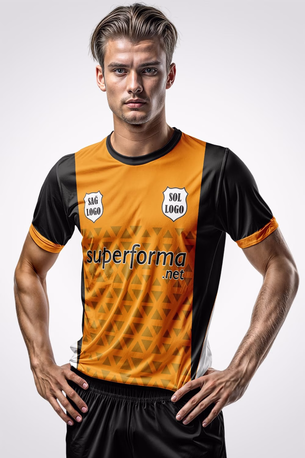 Formanın turuncu zemin üzerine uygulanan siyah detayları ya da çizgileri, estetik açıdan güçlü bir denge kurar. Sahada net bir takım duruşu sergilemek isteyenler için bu renk seçimi ideal bir tercihtir.
