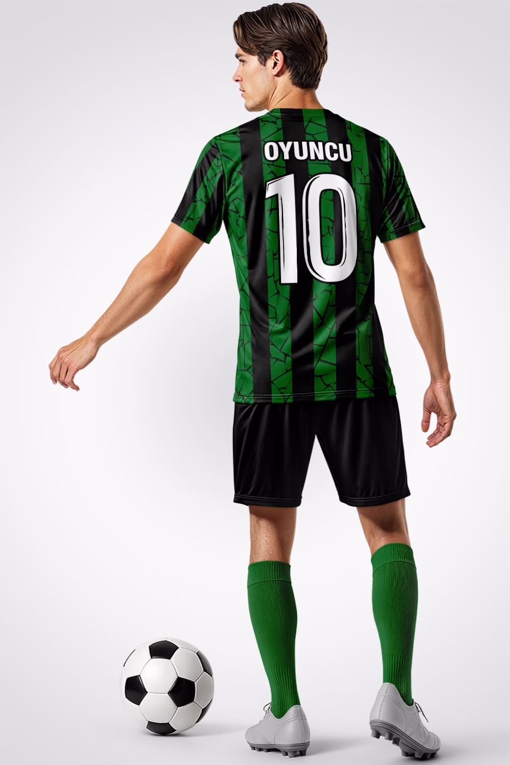 Yeşil Siyah Çubuklu Halı Saha Forma ile Klasik Tarzın Modern Yorumu Sahada