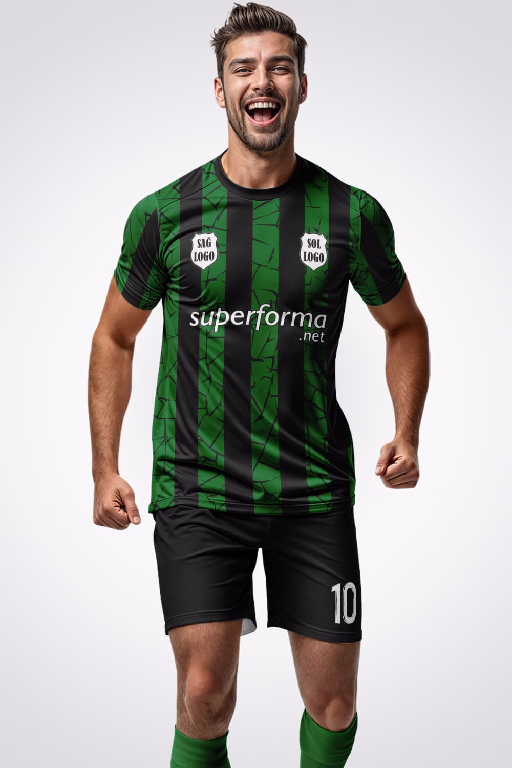 Yeşil Siyah Çubuklu Halı Saha Forma